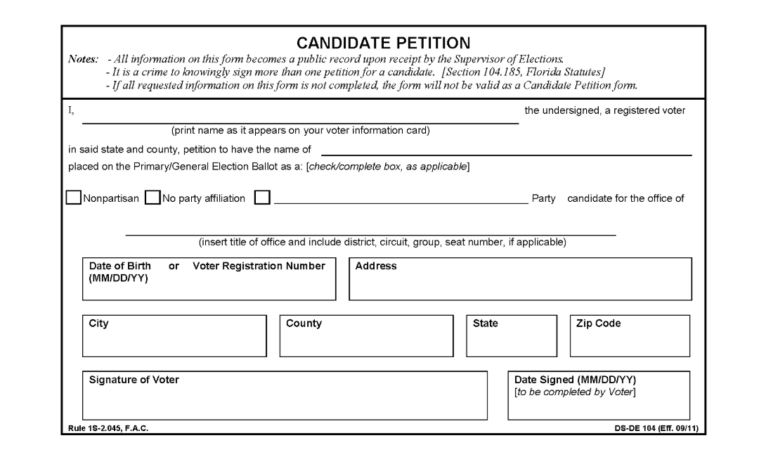 Step 5: Since the original signed and dated paper copy must be turned into the Seminole County Supervisor of Elections, please mail your signed and dated candidate petition to: